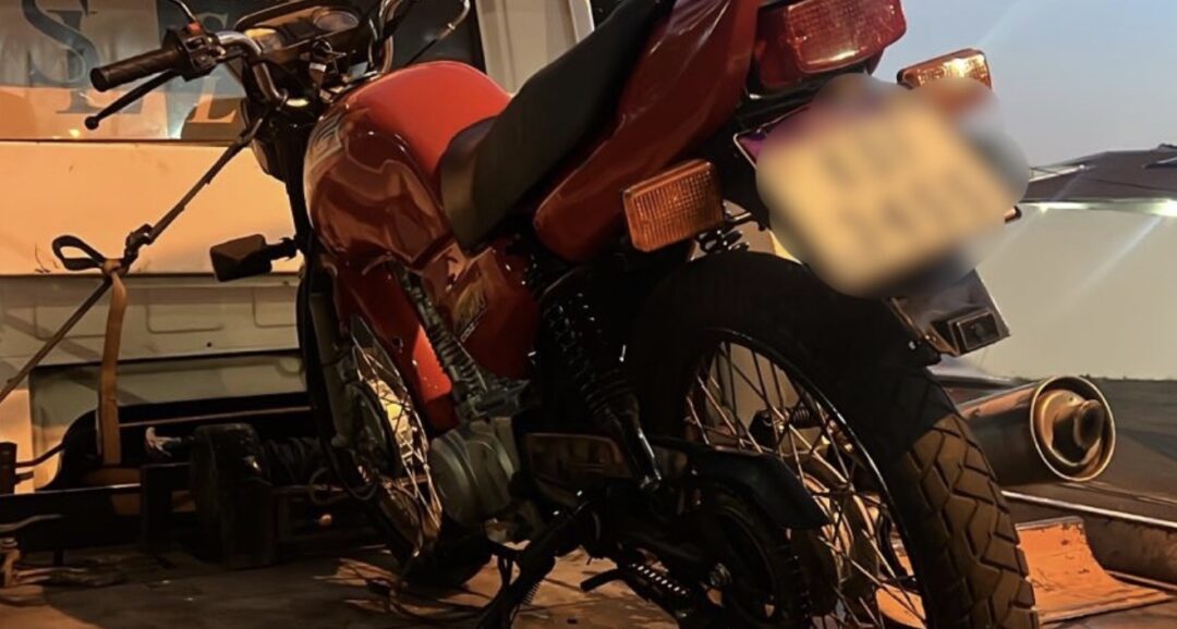 De acordo com a Polícia Militar, a equipe realizava patrulhamento quando avistou o indivíduo empurrando uma motocicleta com uma placa artesanal, o que levantou suspeitas e motivou a abordagem.