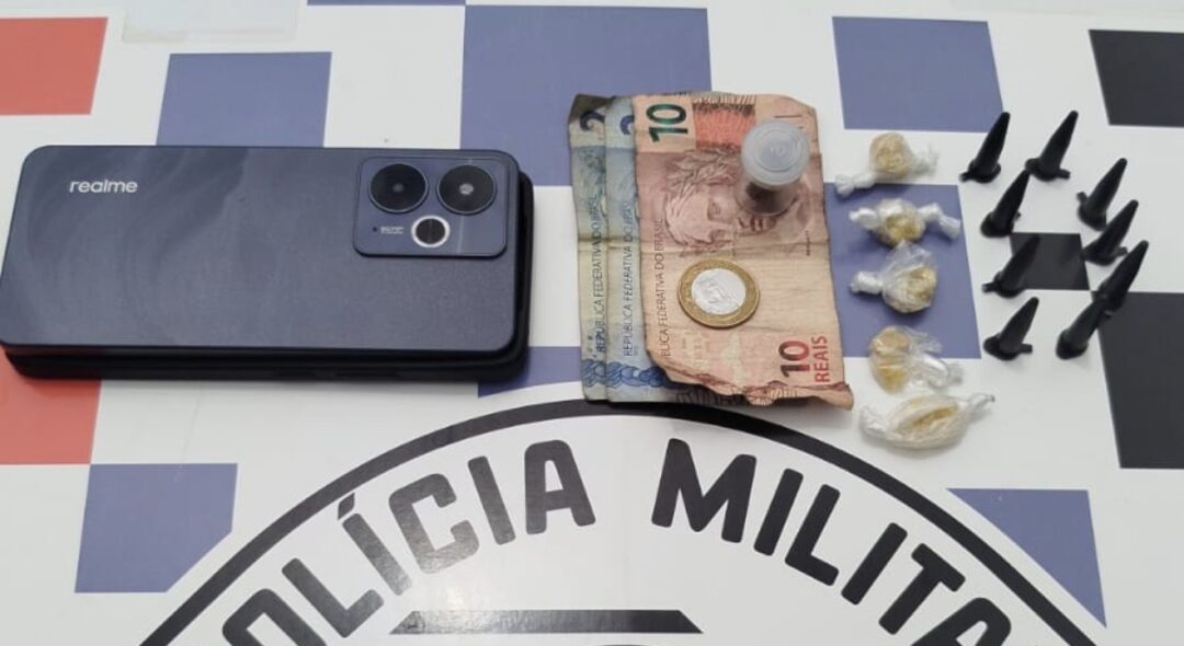 Foram apreendidos entorpecentes, dinheiro e um aparelho celular.