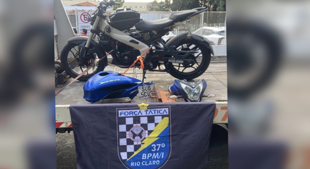 Durante patrulhamento na tarde desta quarta-feira (26),, por volta das 15h50, equipes da Companhia de Força Tática do 37º BPM/I localizaram uma motocicleta produto de furto no bairro Jardim das Paineiras, em Rio Claro (SP).