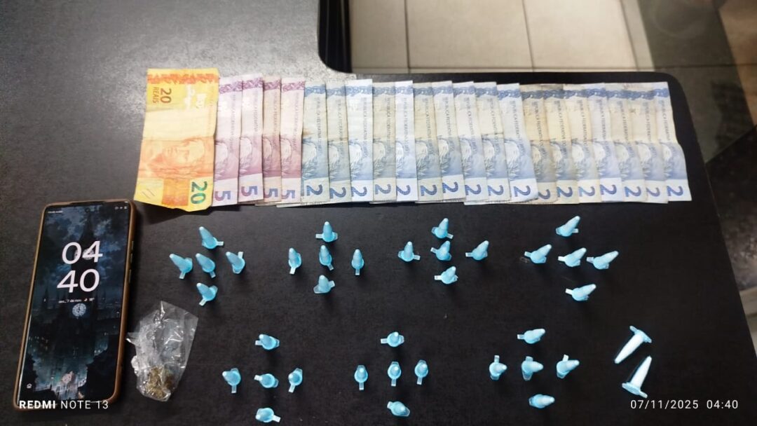 De acordo com o boletim, por volta das 3h50, os policiais da Equipe Delta patrulhavam a Rua 7, local conhecido pelo intenso tráfico de drogas, quando visualizaram dois indivíduos em um ponto de ônibus sem iluminação. Ao notarem a presença da viatura, ambos demonstraram nervosismo, o que motivou a abordagem.