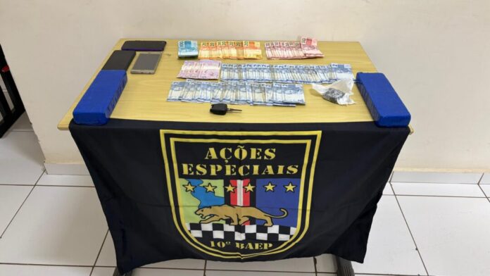 Foram apreendidos 45,4 gramas de cocaína, 0,25 grama de maconha e R$ 10 em espécie.