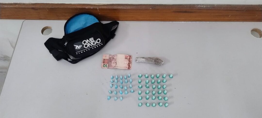 Na busca pessoal, foram encontrados seis eppendorfs com substância semelhante à cocaína no bolso da roupa do abordado. Nas proximidades, os militares localizaram uma pochete contendo outros 48 eppendorfs da mesma substância, uma porção de material semelhante à maconha e R$ 10 em dinheiro.