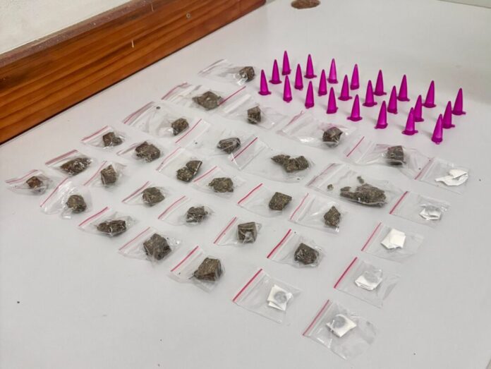 Os policiais realizaram buscas no ponto informado e localizaram outras embalagens contendo 26 porções de maconha, 18 ependorfs de cocaína e seis porções de substância conhecida como dry.