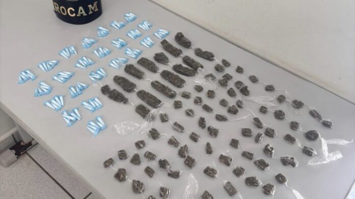 Durante a abordagem, os policiais localizaram 207 porções de substâncias ilícitas, todas acondicionadas em embalagens distintas. Um dos adolescentes declarou informalmente que os dois estavam iniciando a venda de drogas no local e que parte do material seria escondida.