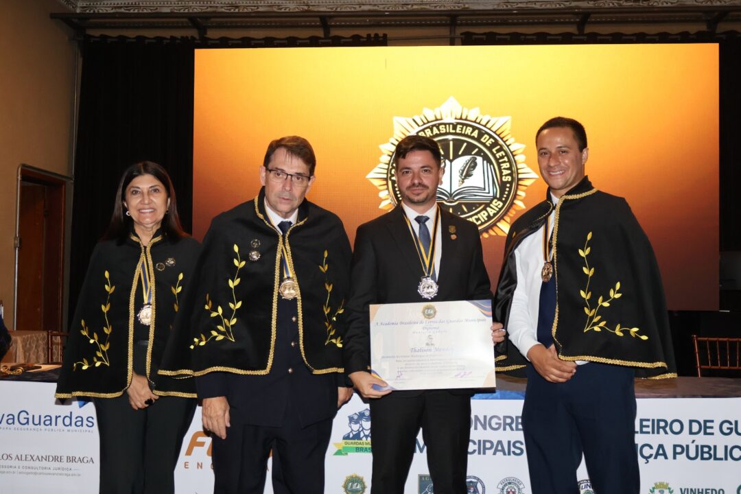 O secretário municipal de Segurança e Defesa Civil de Rio Claro (SP), Thalison Mendes, recebeu a Medalha de Mérito e o Diploma “Monteiro Lobato”, concedidos pela Academia Brasileira de Letras das Guardas Municipais, em reconhecimento aos serviços prestados à área de segurança pública.