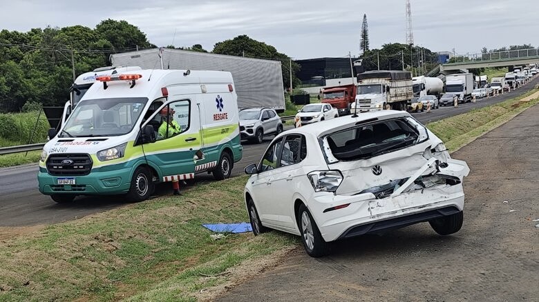 Nesse contexto, o caminhão acabou colidindo na traseira de um Volkswagen Polo, que foi arremessado para frente. Com o impacto, o veículo sofreu uma nova colisão e acabou lançado para o canteiro central da rodovia.